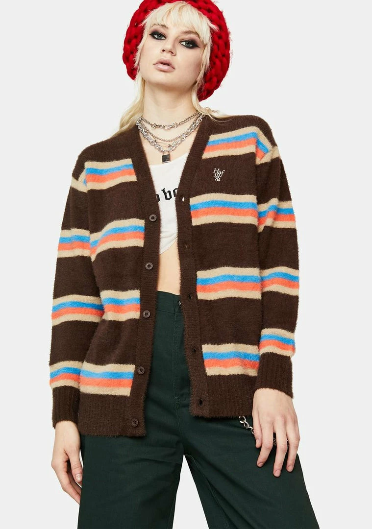 Flash Sale 🌟 HUF 1984 Mohair Stripe Cardigan Sweater Tops 🔥