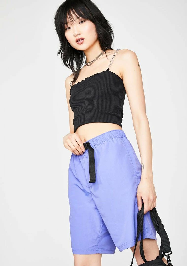 cuz you got the baddie vibez. Look dope AF in these nylon shorts that have a relaxed fit, an adjustable elastic waistband, a mesh cargo pocket, double side pockets, and a back zip pocket.