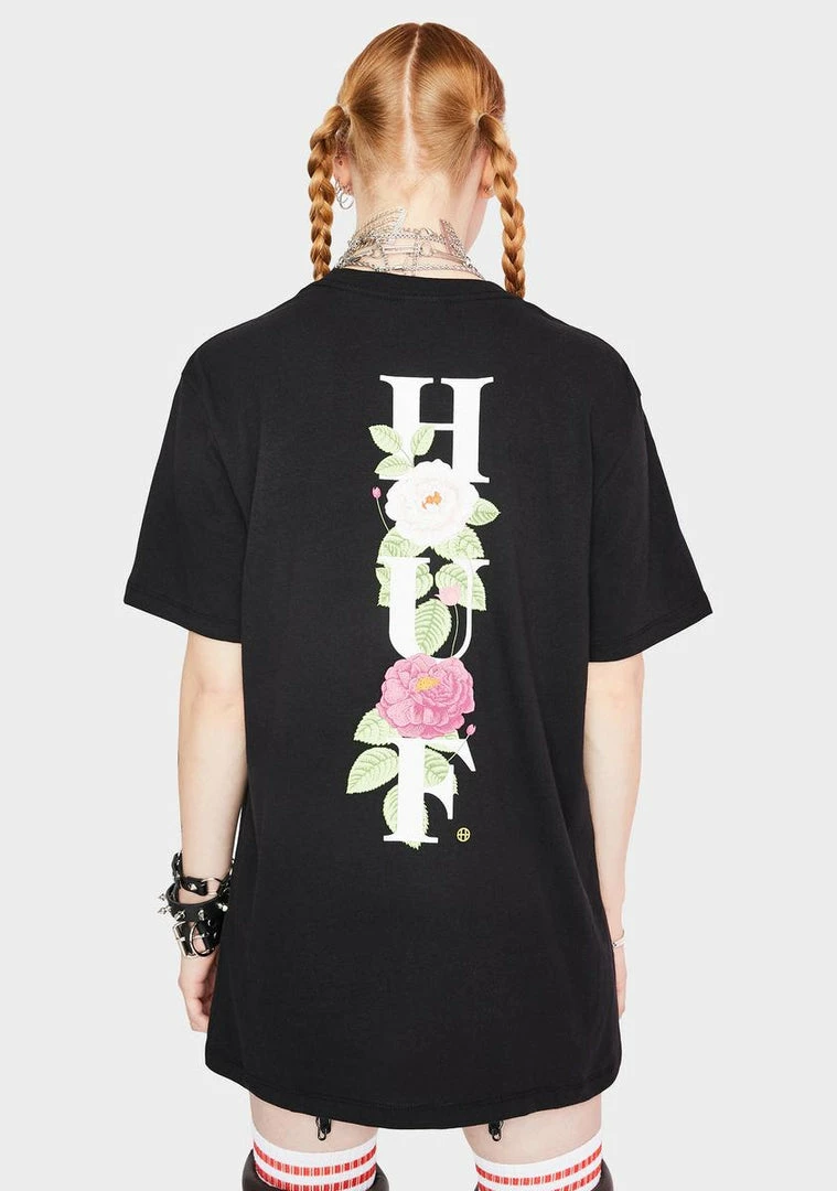 because youΓ’ΒΒre ready for the weekend. This short sleeve t-shirt has a crew neckline, relaxed fit and botanical logo design filled with flowers on the front and back.