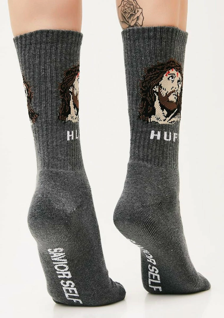 cuz you know we celebrate his bday. Savior self with these socks that feature a graphic of Jesus. Walk on water with the cushioned heel Nâ toe box.