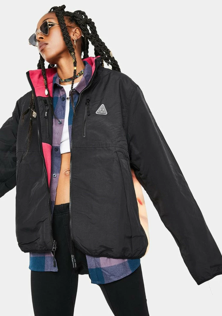 because youΓ’ΒΒre about to take off. This reversible jacket has water-repellent nylon, vertical zip pocket and rubber HUF Triple Triangle patch with the USA Space Shuttle launch graphic across the back.