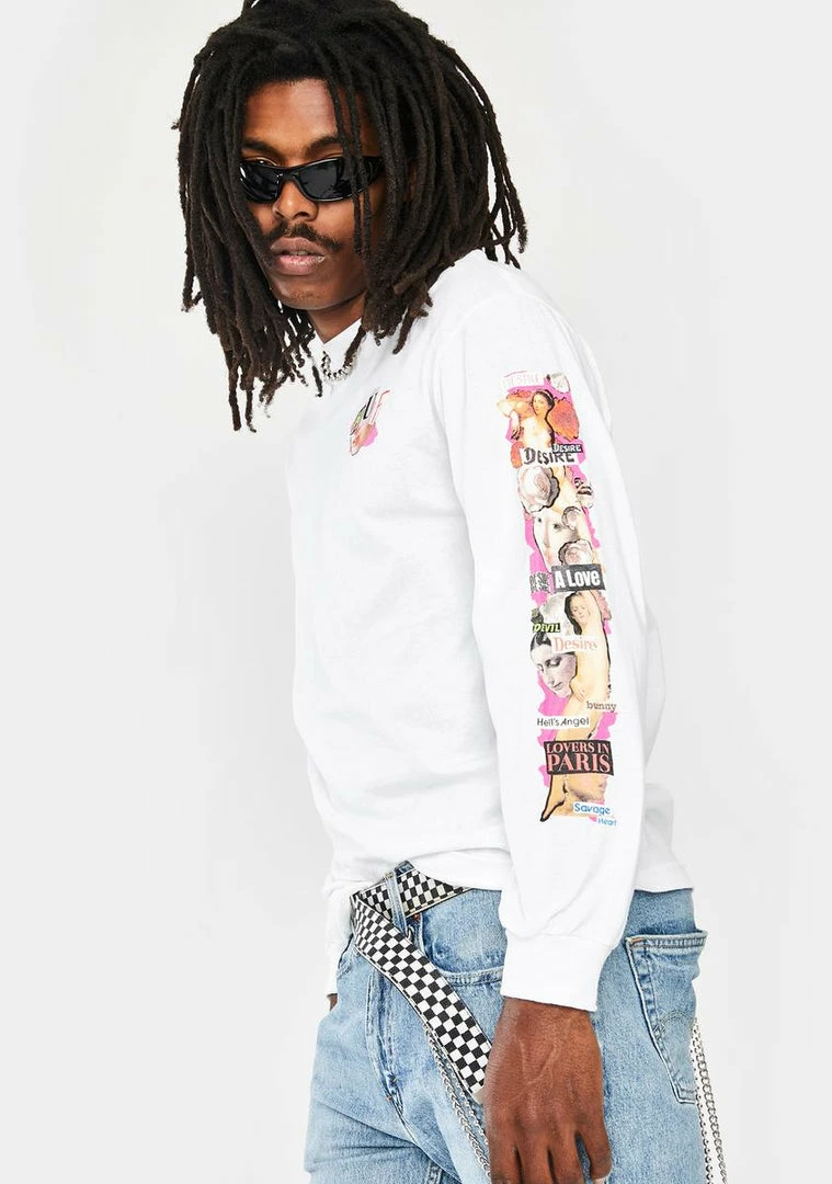 cuz you always go for what ya want! Give in to yer deepest desires in this sikk long sleeve tee that has sultry collage-style graphics on the front Nรขยย sleeves and a relaxed fit.