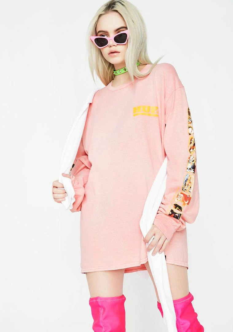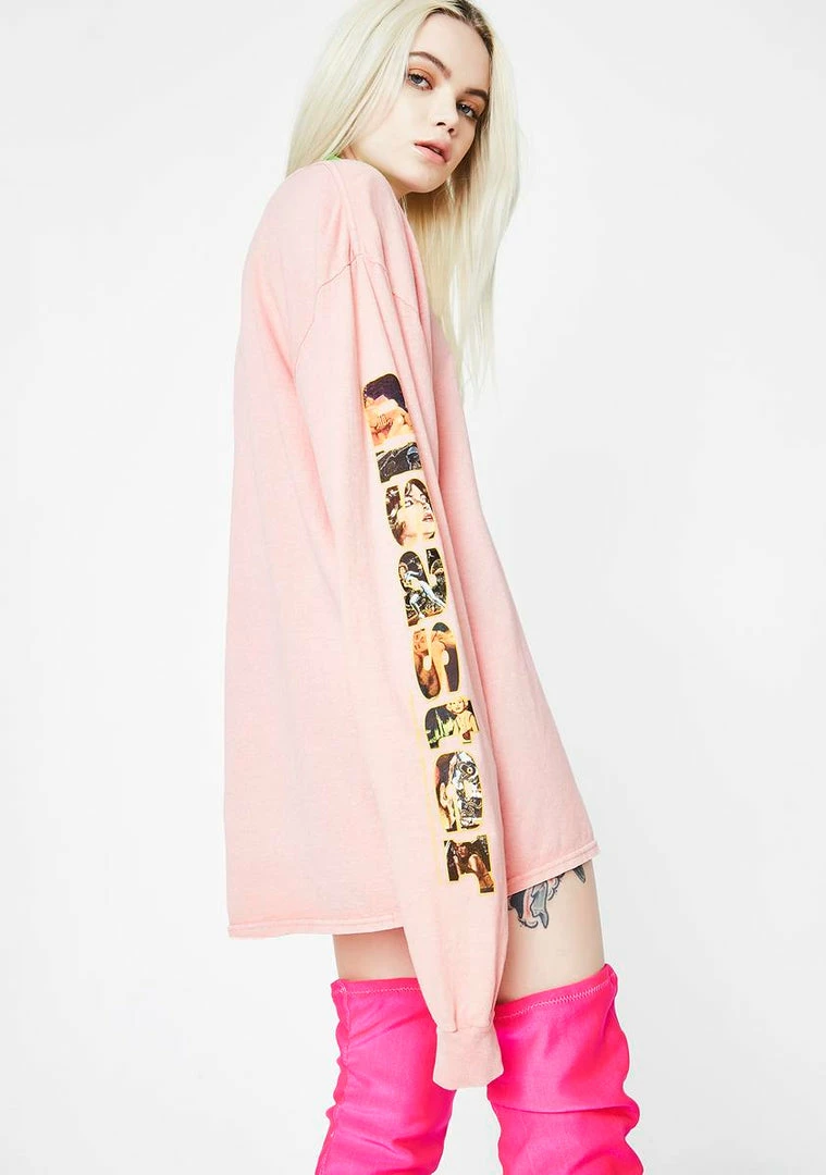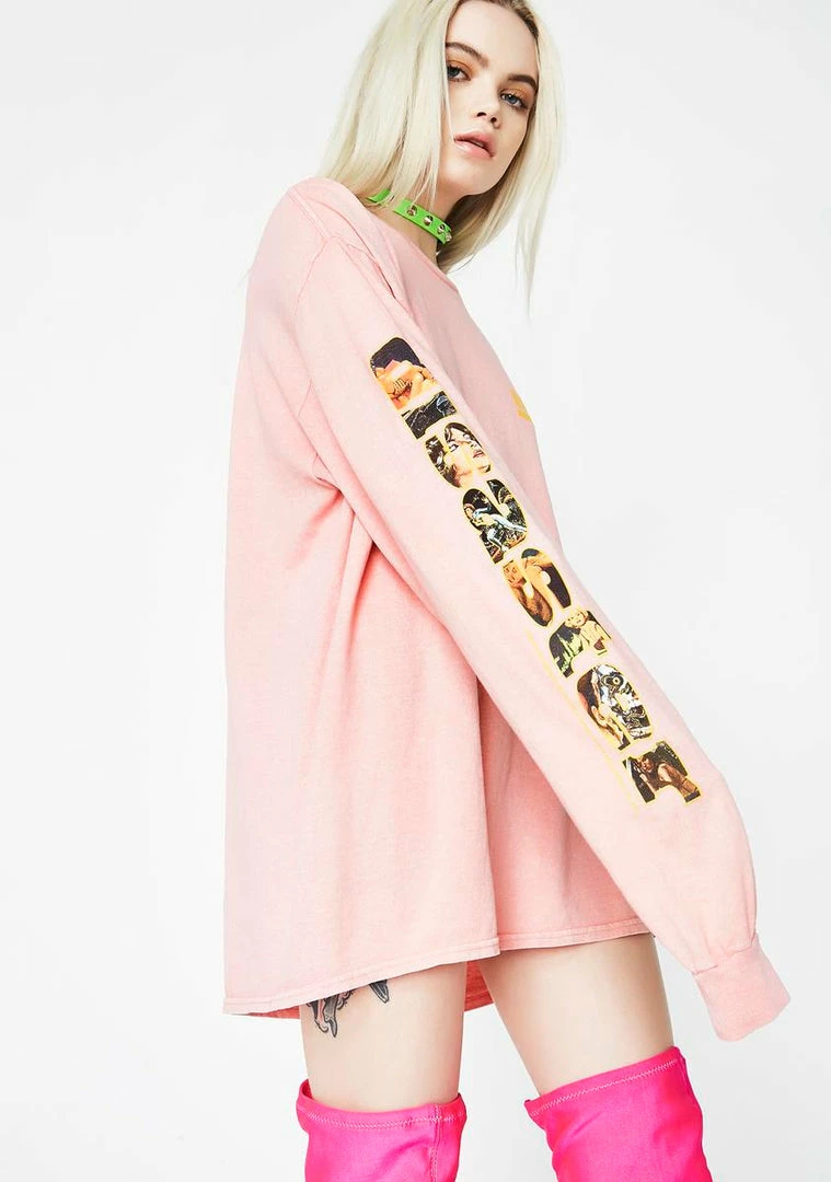 cuz ya asking for trouble. Give emรขยย double trouble vibes in this oversized tee that has a round neckline, and kodak screen printed long sleeves.