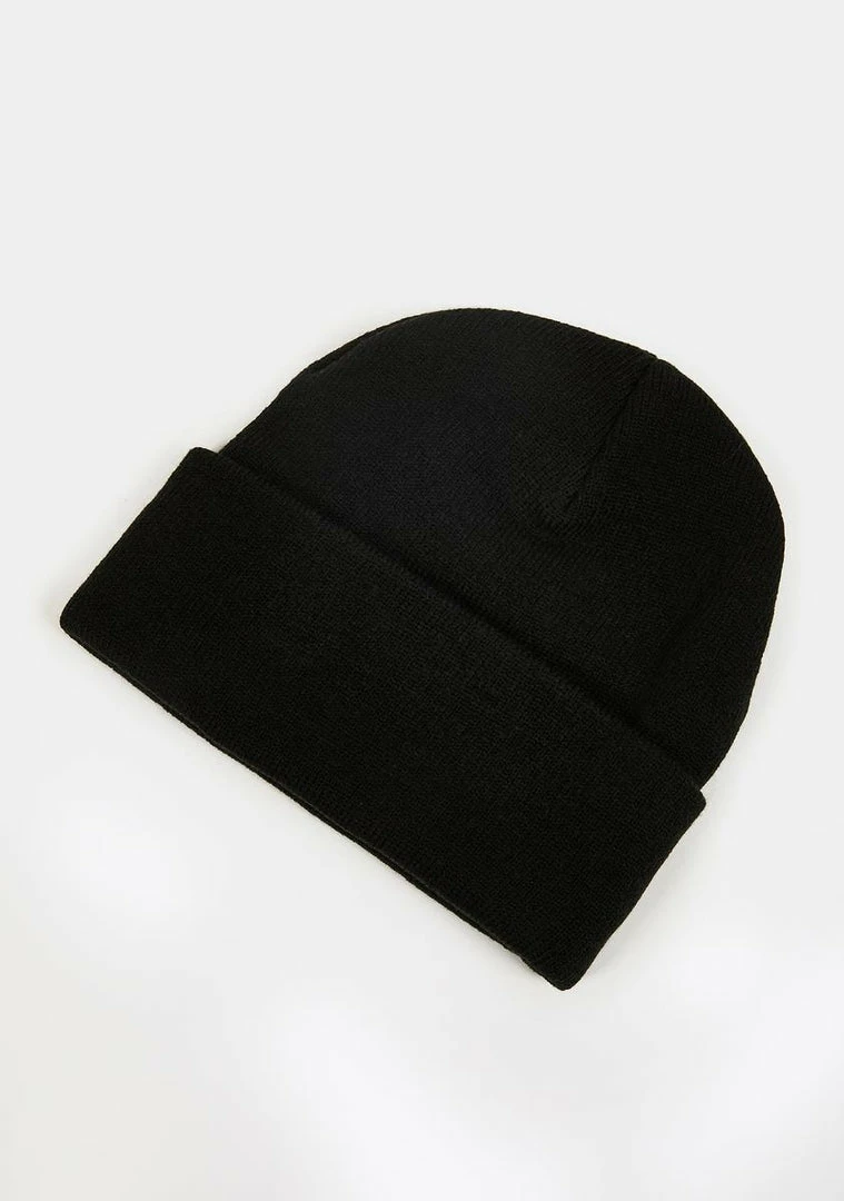 features a knitted construction, a fold over hem, and a triangle brand logo embroidered at the fold.