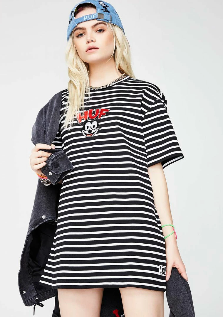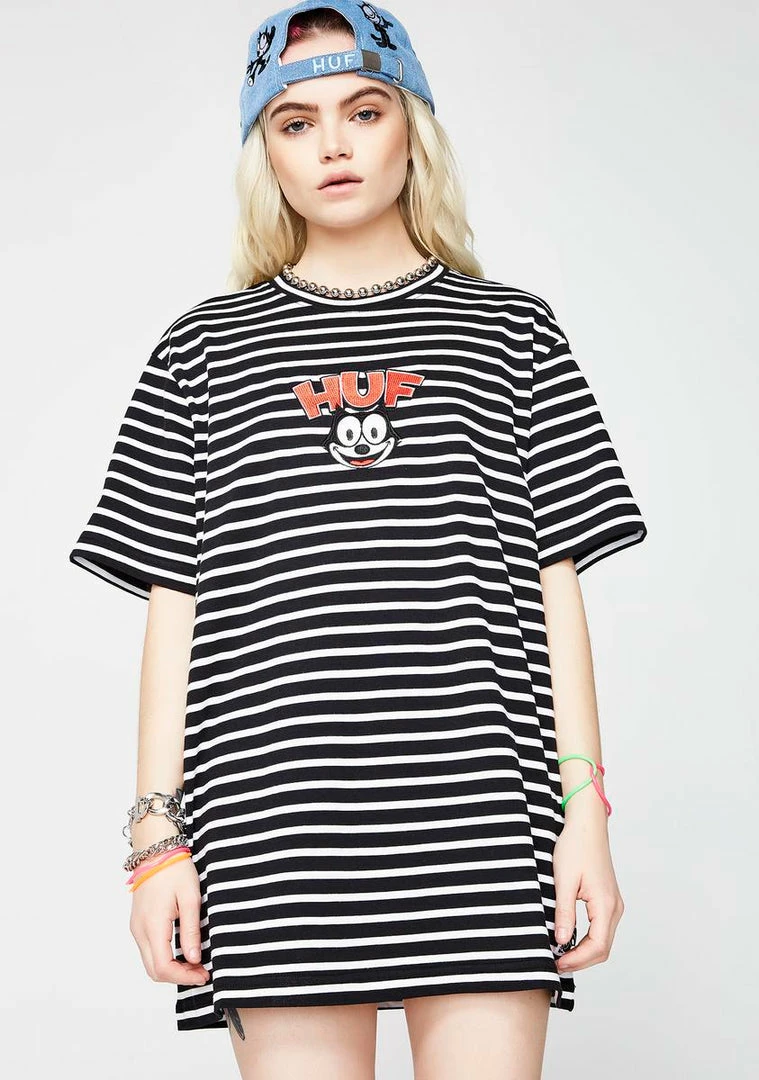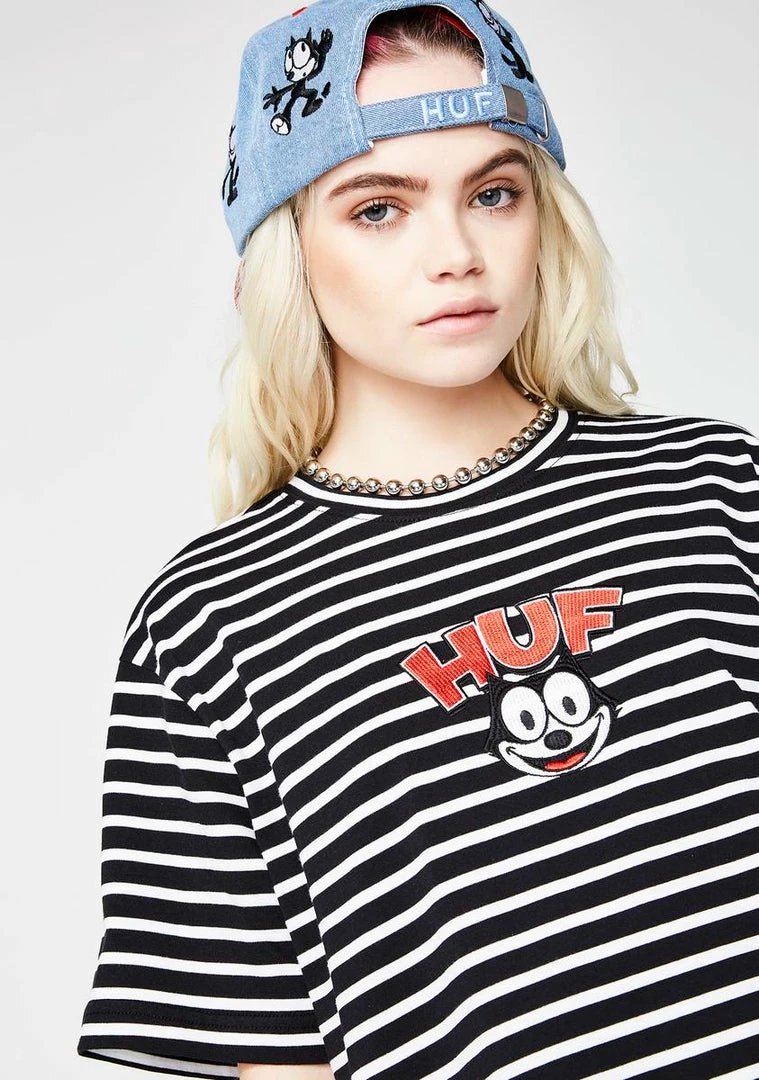 cuz you donΓ’ΒΒt know how to act. Be cool with this tee that has an embroidered Felix on the front and is striped all ova.