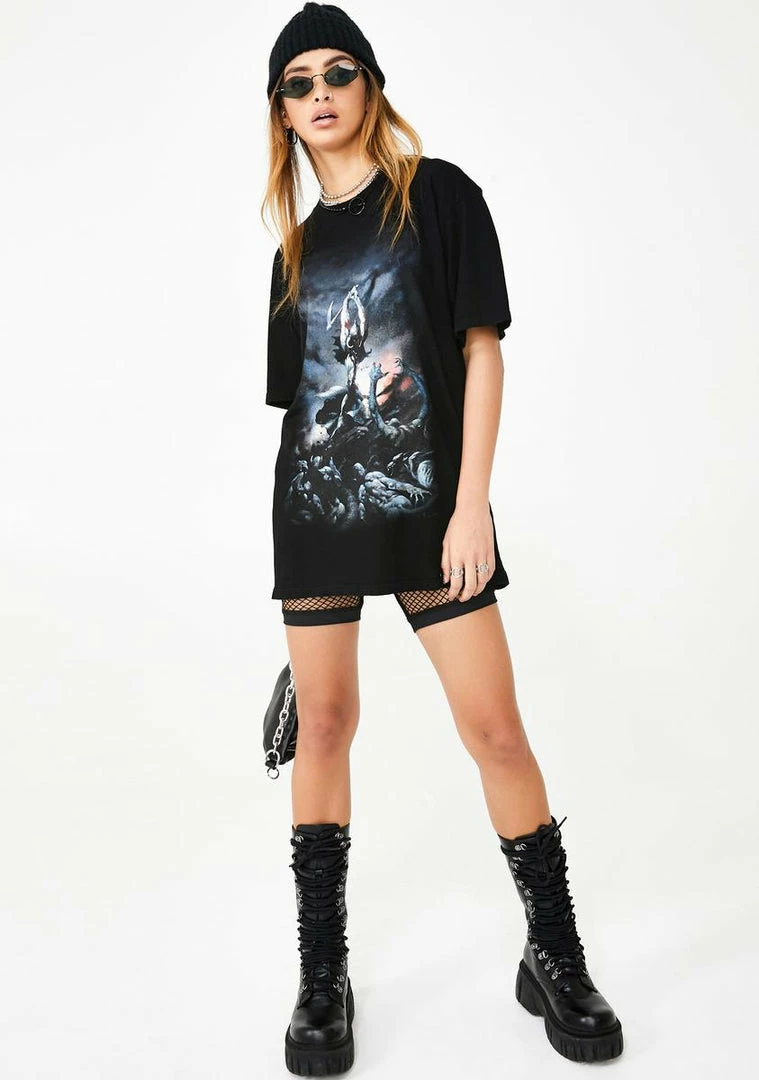 is this the end?! Look epic AF in this short sleeve graphic tee that has a rounded neckline, sikk graphics on the front N’ back, and a loose fit.