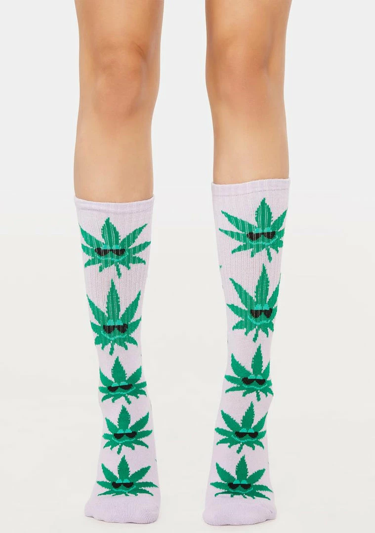 time to chill. These socks come in a crew length, with a signature leaf print all over.