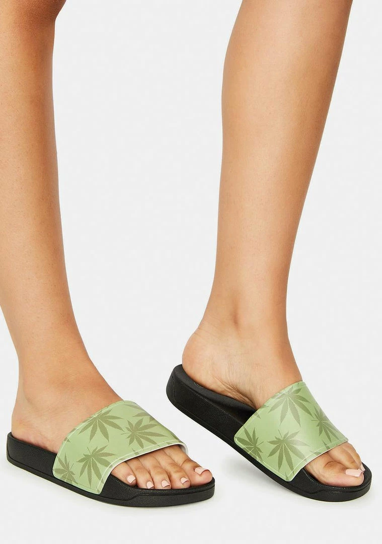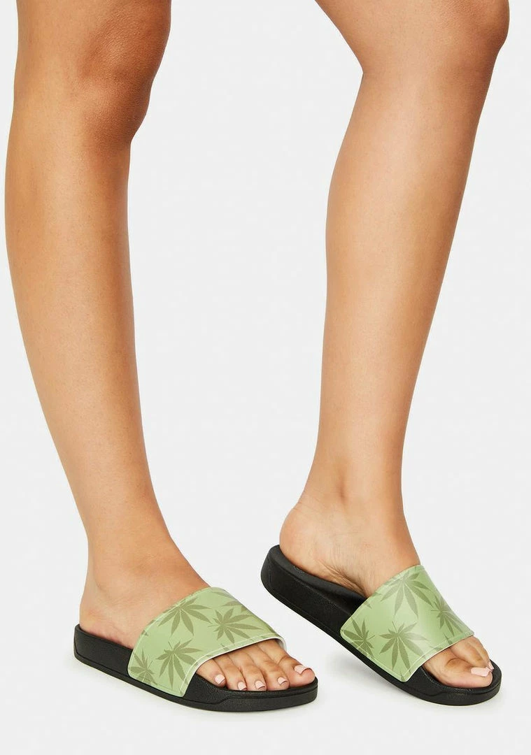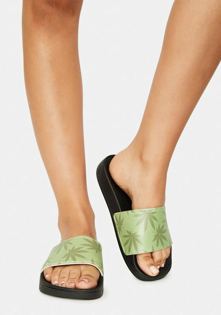 itz a lifestyle, bae. Get with it or get lost in these higher than life slides that have leaf screen print graphics across the straps and comfy dual-density soles.