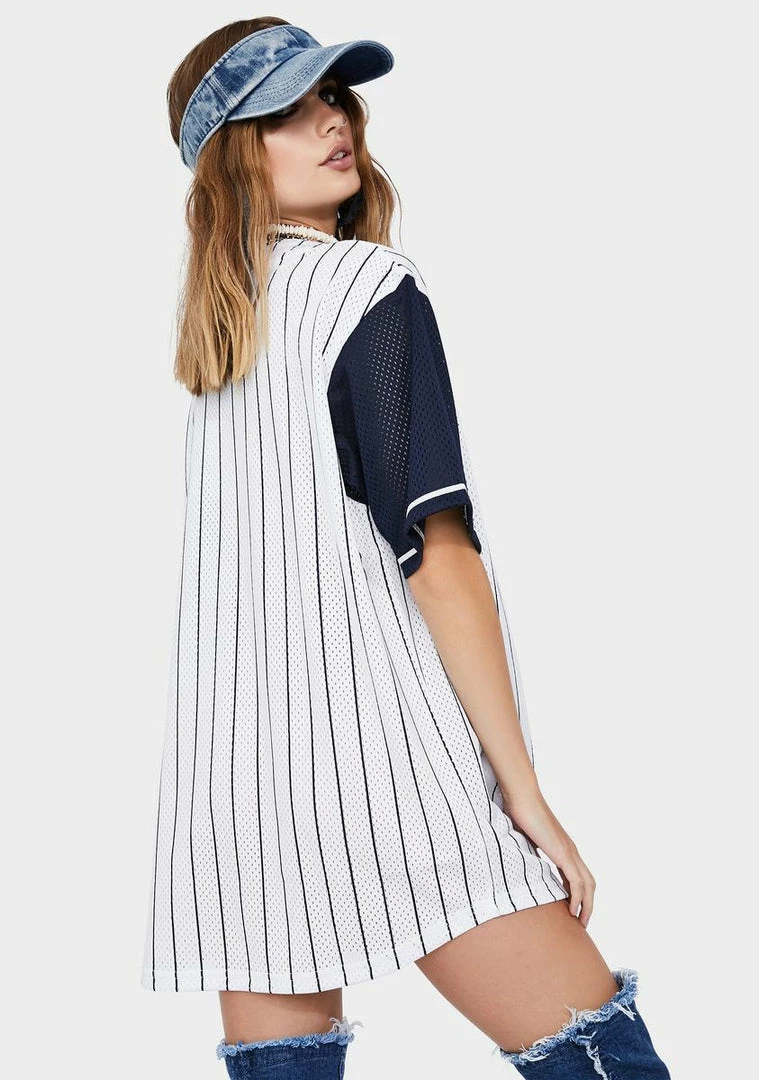 because youΓ’ΒΒre going for a home run. This short sleeve button up jersey has a throwback design with different panel patterns and a baseball letter patch on the breast.