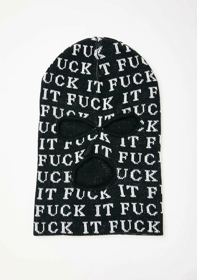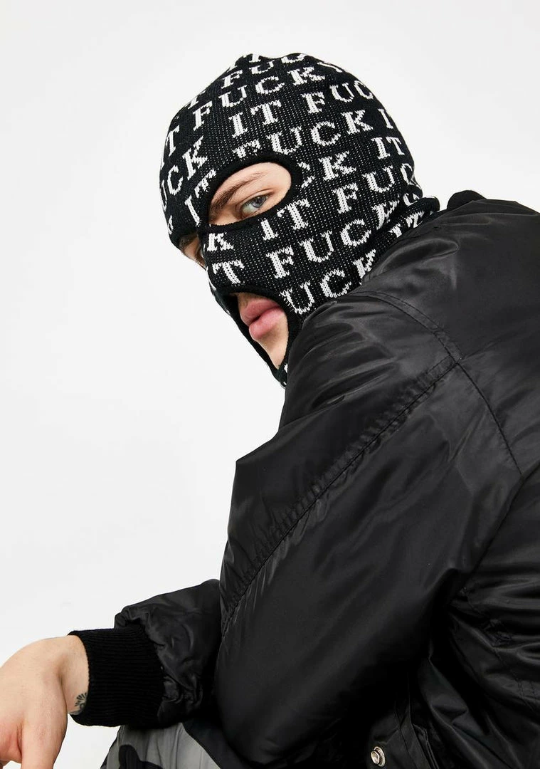 cuz why the fuqq not? Unleash yer inner IDGAF in this rad ski mask that has a stretchy knit construction with ruthless text graphics all ova and cut-outs for yer eyes Nรขยย mouth.
