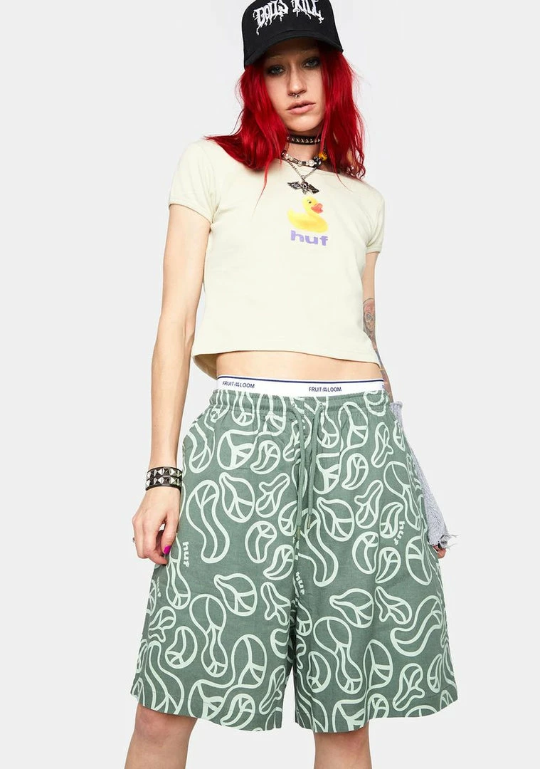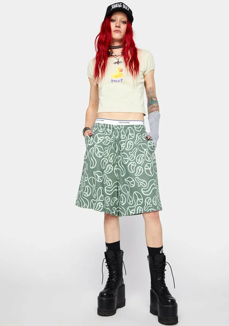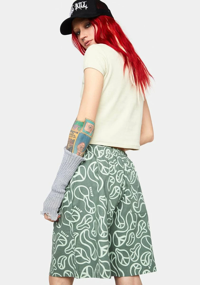 Budget 👏 HUF High Waist Shorts Sage Groovy Wide Shorts 👏