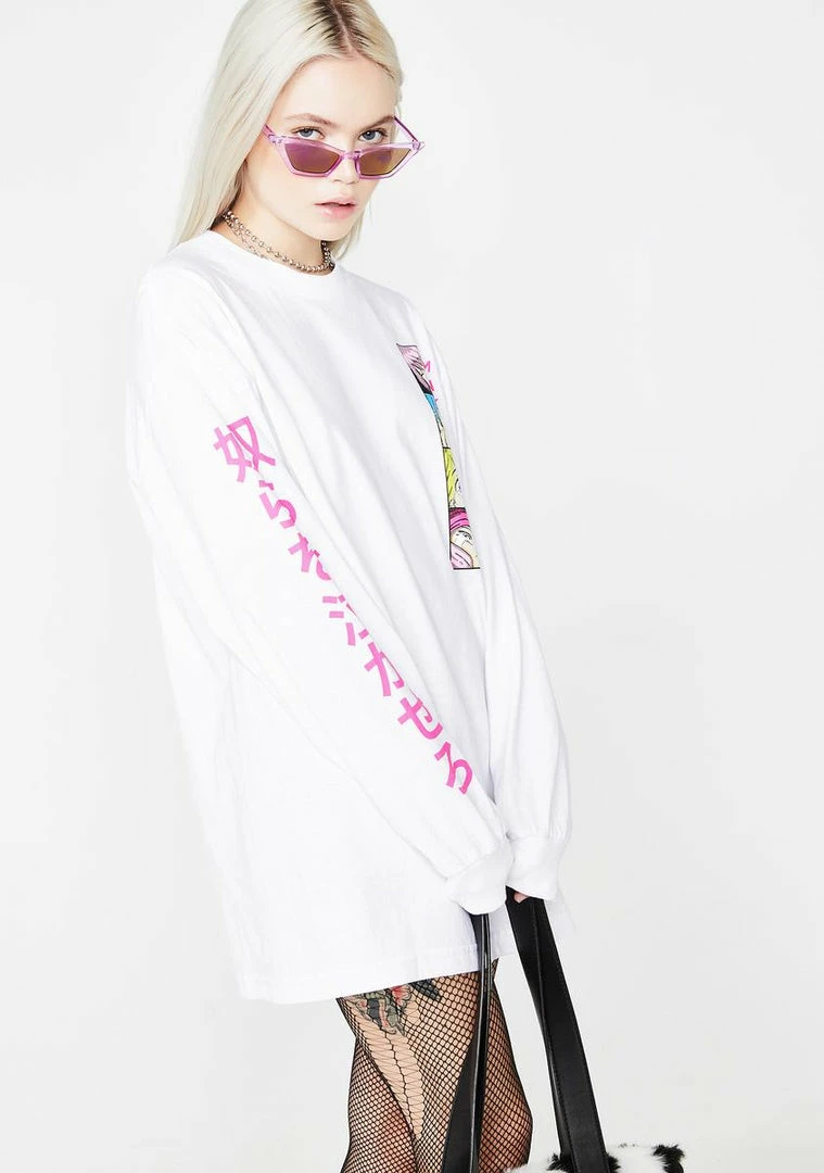 cuz ya better get your way or else! You do it for fun bb in this dope long sleeve tee that has a round neck and graphics on the front Nรขยย sleeve.