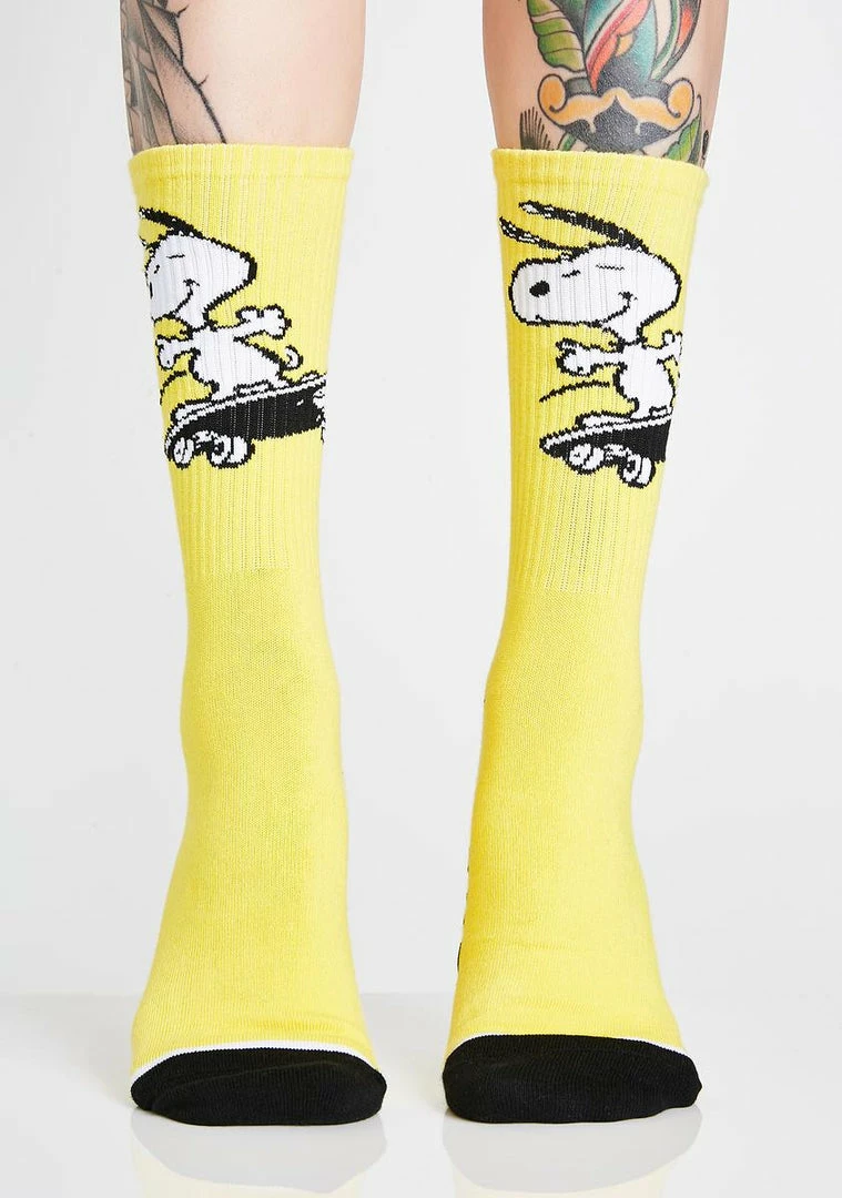 got ya flying down the street! Do it like Snoopy in these dope socks that have a graphic of Snoopy skateboarding on the sides and cushioned heelz Nâ toes.