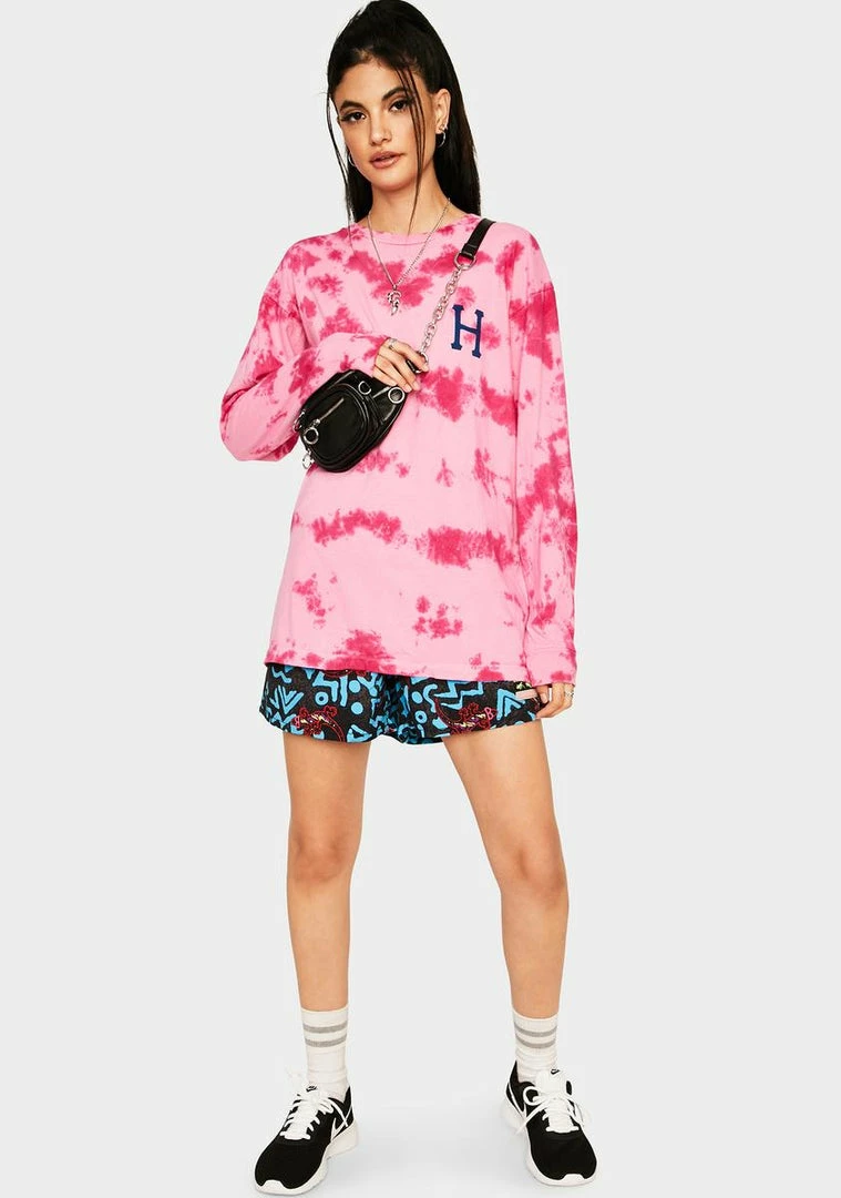 Best Sale โจ HUF Pink Classic H Watercolor Long Sleeve Tee Tops ๐