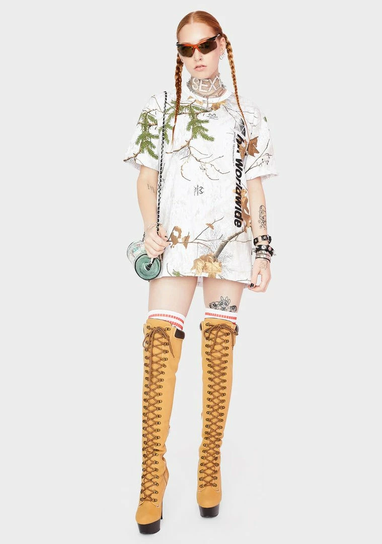 because youΓ’ΒΒre too wild. This short sleeve t-shirt has a crew neckline, short sleeves, relaxed fit and forest camo print all over.