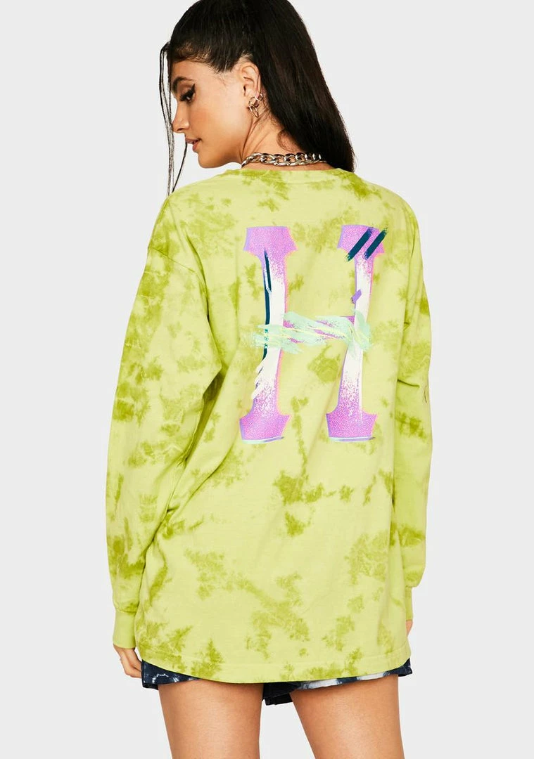 Hot Sale ๐ HUF Safety Green Classic H Watercolor Long Sleeve Tee ๐ฅ