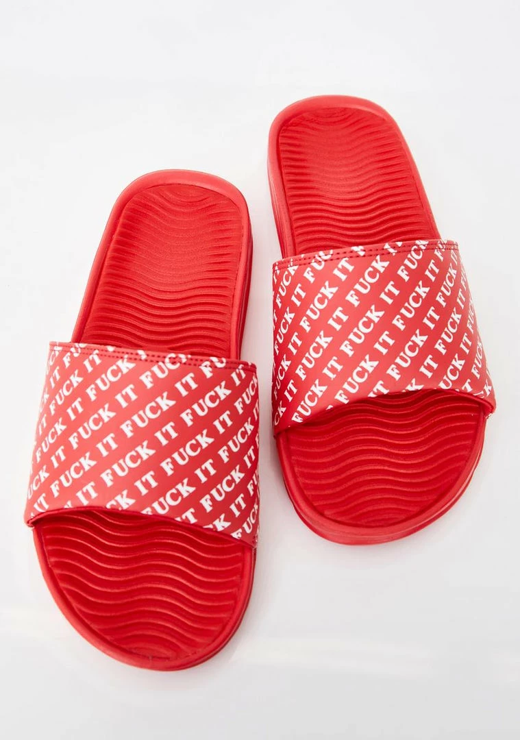 oops, I forgot to care! Raise ya middle fingers high in these dope AF slide sandals that have screenprint graphic across the straps Nâ cushioned soles.