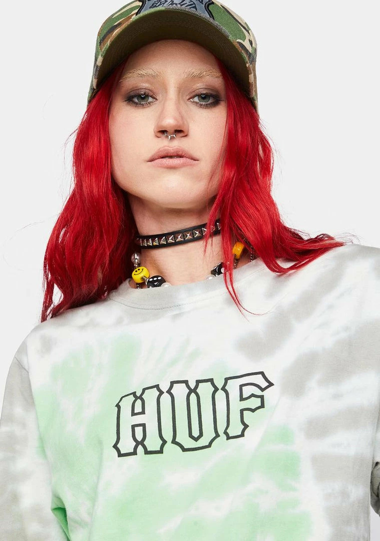 it’s easy breezy. This cotton tee has a tie dye design, a classic HUF logo printed across the chest, and a relaxed fit.