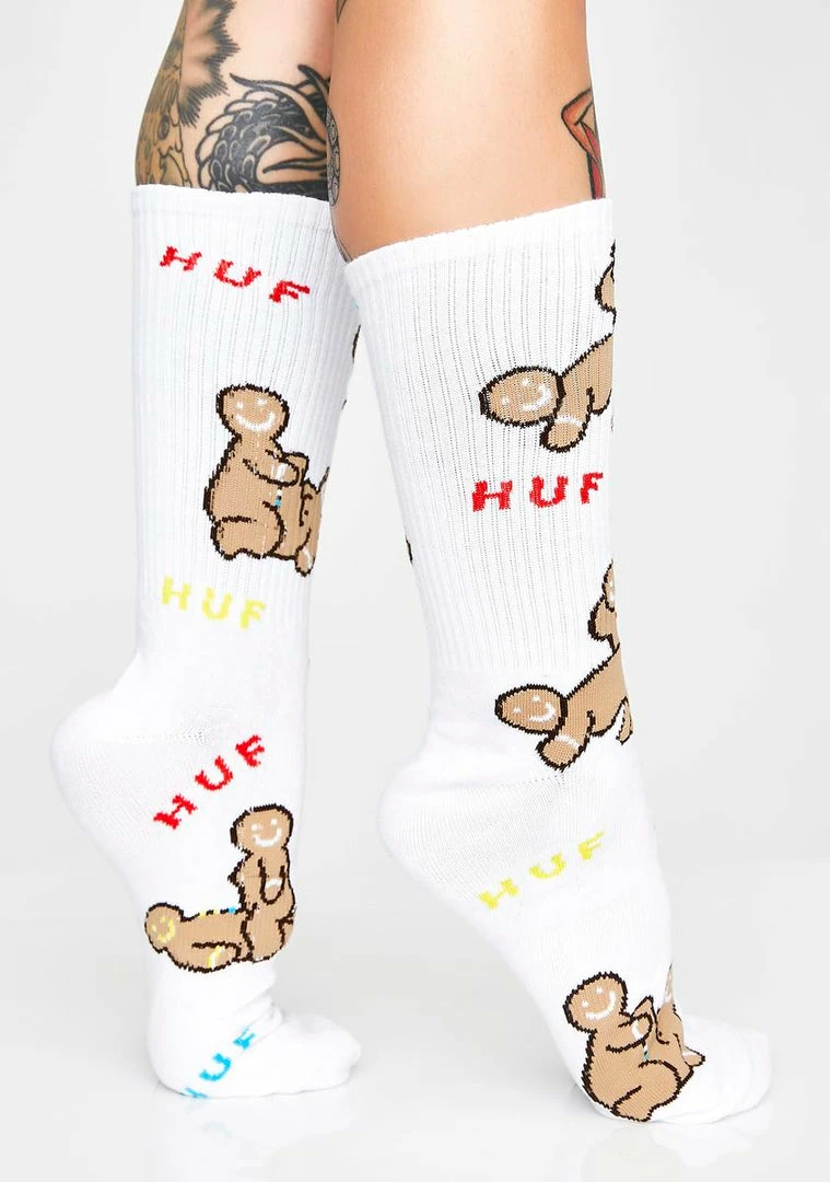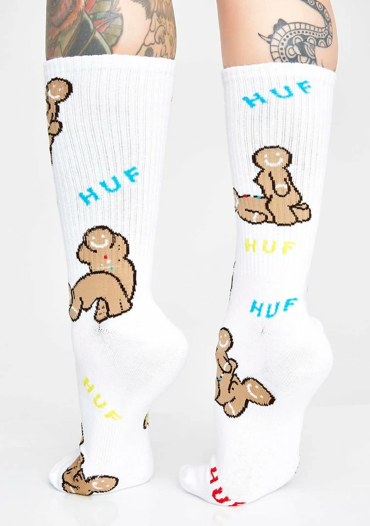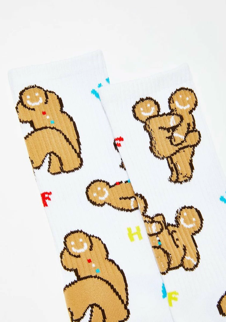 cuz youΓ’ΒΒre definitely on the naughty list bb. Turn up the heat in these knit crew socks that are cozy AF and have lil gingerbread peeps gettinΓ’ΒΒ freaky all ova.