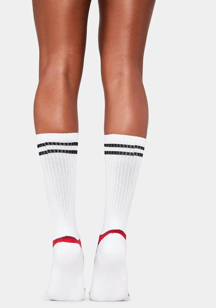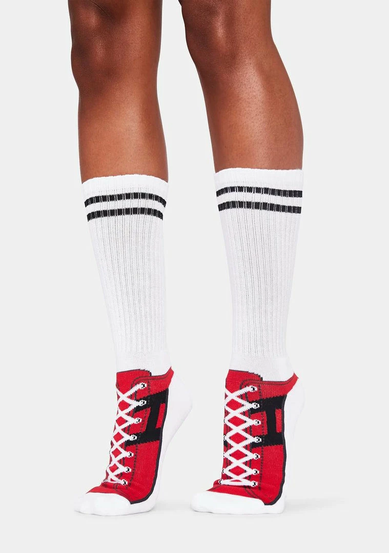 cuz yer ready to go. These crew socks have stripe uppers N’ shoe graphics.