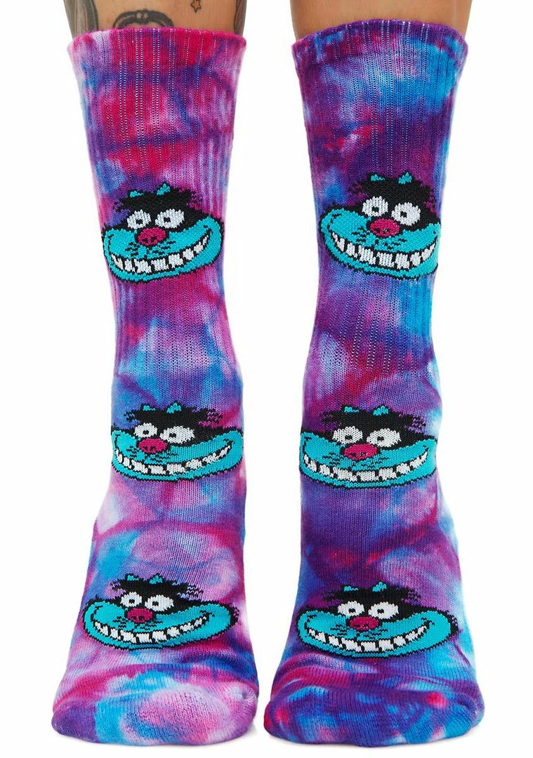 when youΓ’ΒΒre up to no good. These crew socks feature a tie dye pattern and jacquard Cheshire the Cat design and a cushioned toe box.