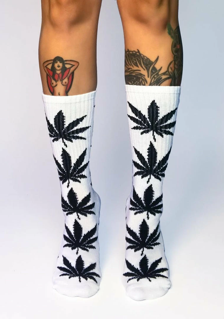 gotcha breakin’ bud! Live the high life with these smokin’ crew socks that dope weed graphics all ova and a stretchy ribbed construction.