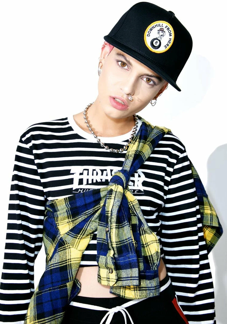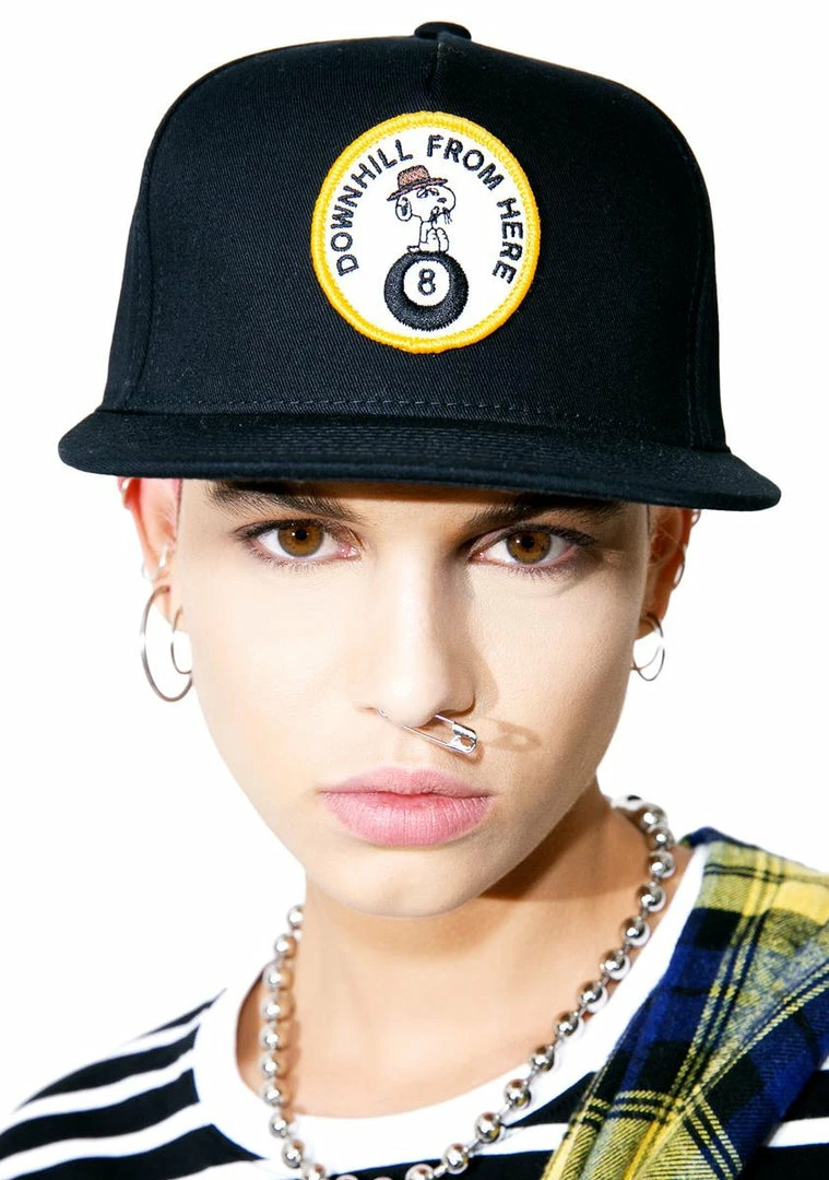 …wut goes up must come down, bb. This dope hat features a classic black canvas construction, featurinΓ’ΒΒ an embroidered patch of Snoopy on an 8 ball that reads, Γ’ΒΒDownhill From HereΓ’ΒΒ complete with a flat brim and an adjustable back strap for the perfect fit.