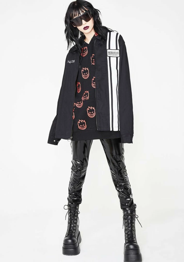cuz lifeΓ’ΒΒs a marathon, not a sprint bb. Chase all your wildest dreamz in this dope jacket that has a racing stripe down the left front with a patch logo, a swirly graphic on the back, pockets on the sides NΓ’ΒΒ brass button closures on the cuffs.