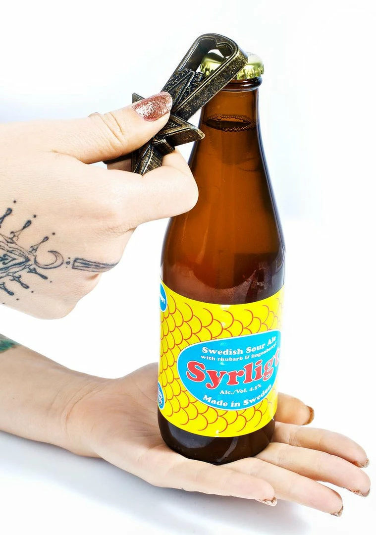 cuz tha greatest always need a cold one, bb. This thick, cast iron antique brass bottle opener features a goat intertwined a pentagram design.