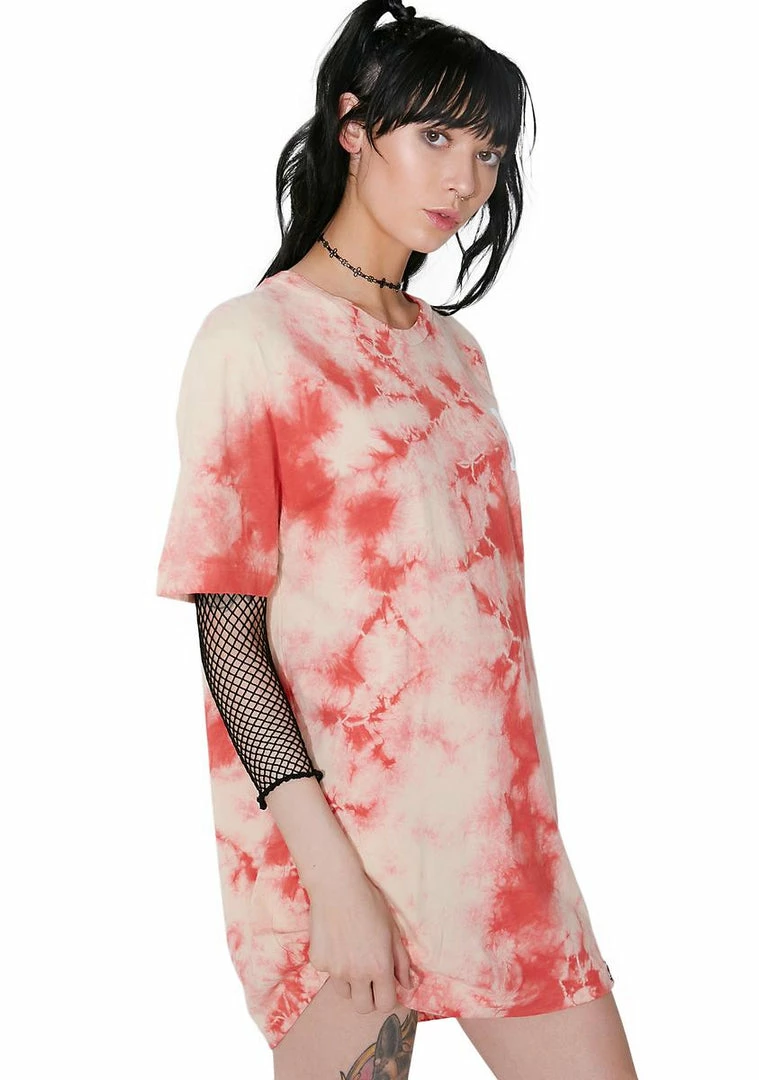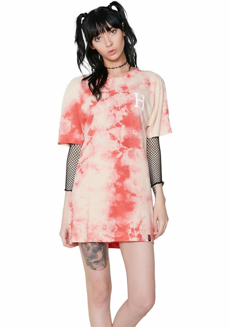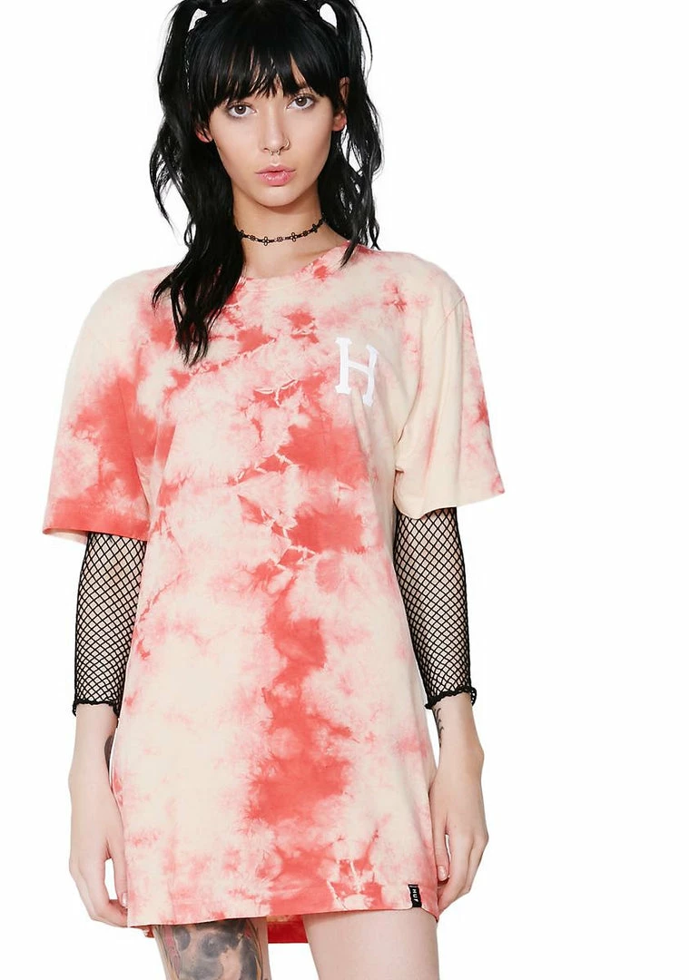 wants you to keep it trippy. This tee has a pinky coral acid wash design and a white H on the chest and back.