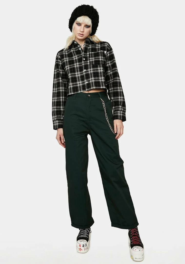 Flash Sale 🤩 HUF Tops Cropped Flannel 👚 Shirt 😉