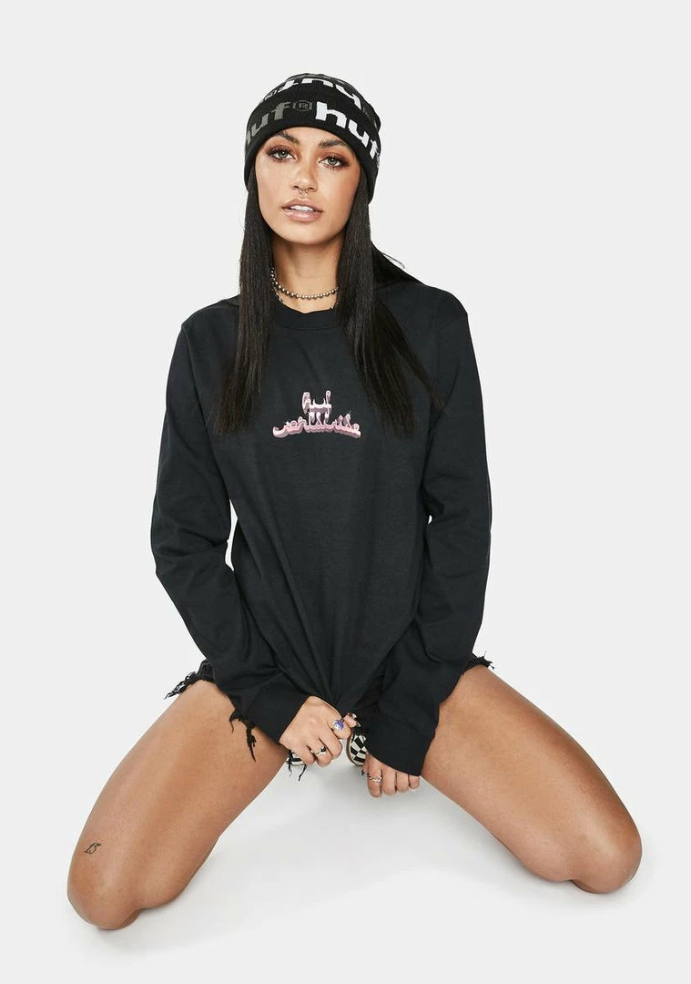 Promo ⭐ HUF Tops Drinking With The Devil Graphic Long Sleeve Tee ⌛