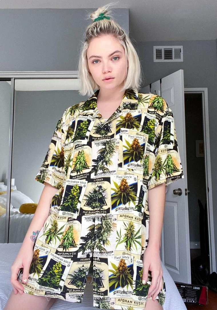 cuz ya grow yer own goodz bb! Give em a high they wonΓ’ΒΒt forget while lookin sikk az hell in this short sleeve button up shirt thatΓ’ΒΒs got weed illustration graphics all over it.