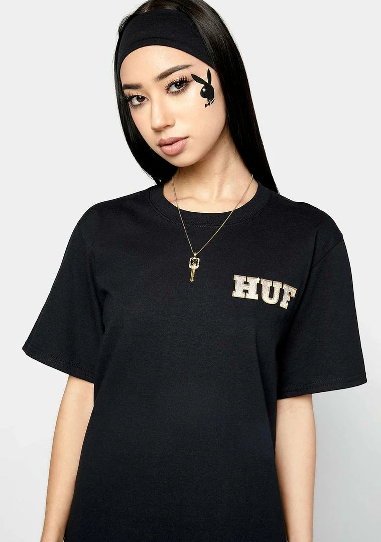 Buy 😉 HUF Tops Playboy Black VVS Logo Graphic Tee 🎉