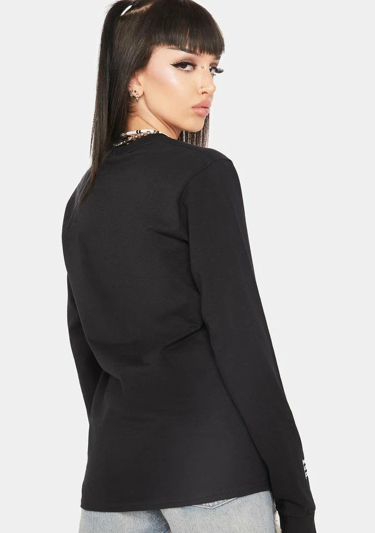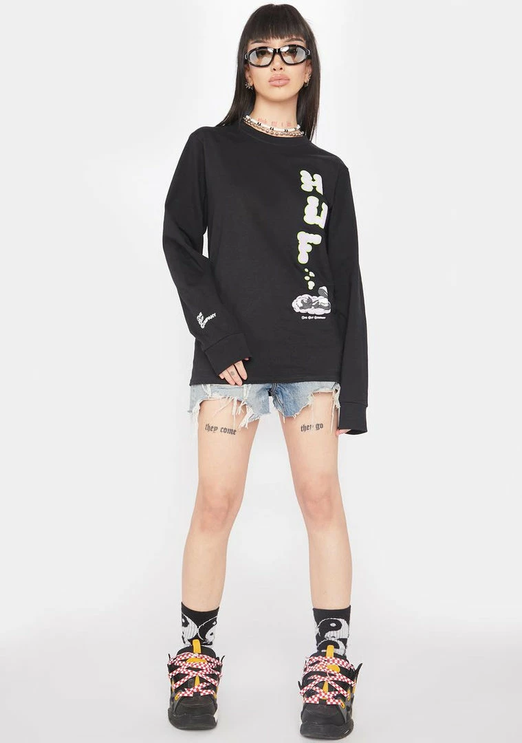 cuz go on a long strange trip. This tee has a crew neckline, long sleeves, and weed themed artwork on the front.