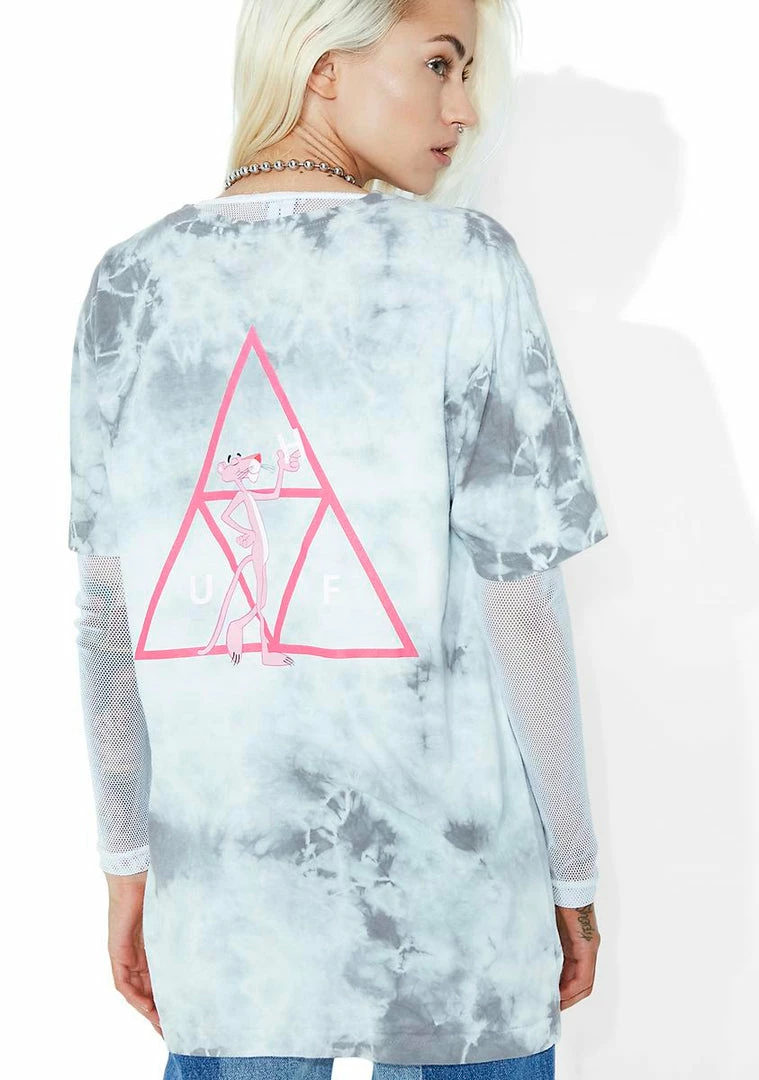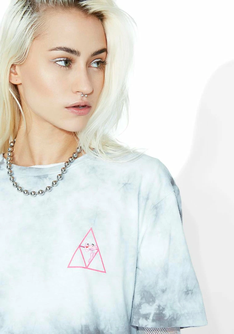 wants to keep yer eye on yew, bb. This classic graphic t-shirt features a tie dye design, relax fit, and screen print collab with Hufรขยยs triangle logo with the Pink Panther inside.