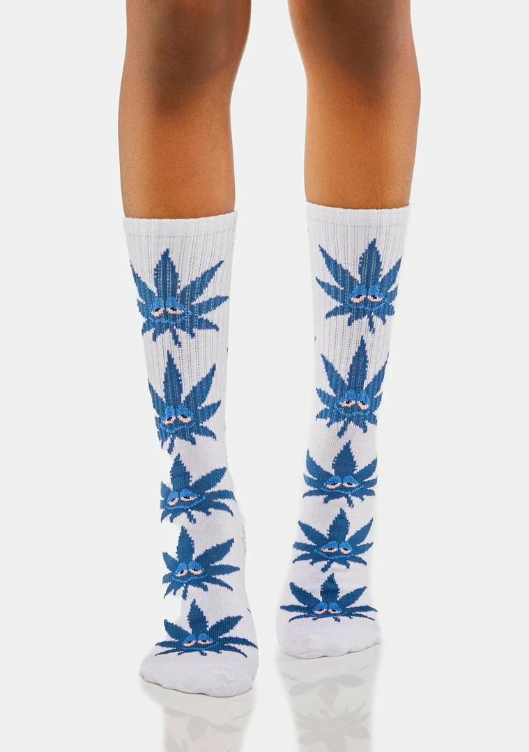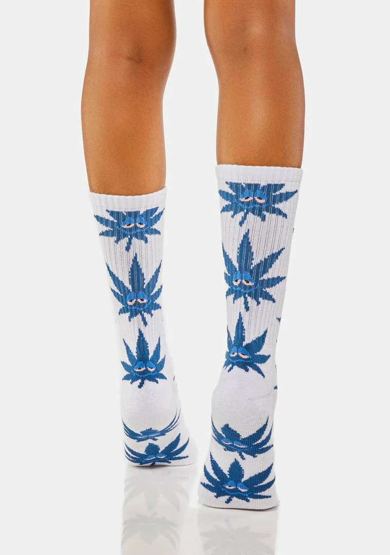 chill out, my friend! These crew socks have a ribbed construction, a weed leaf print, and cushioned footbeds.