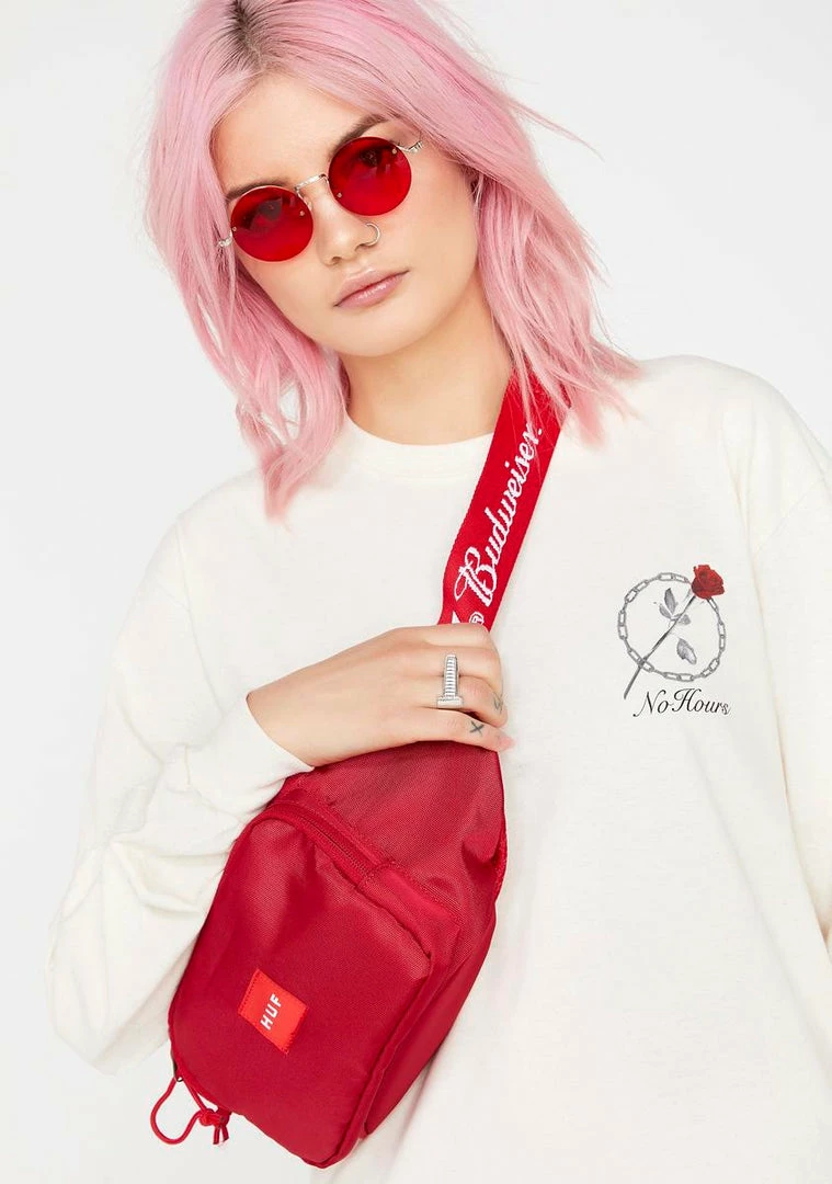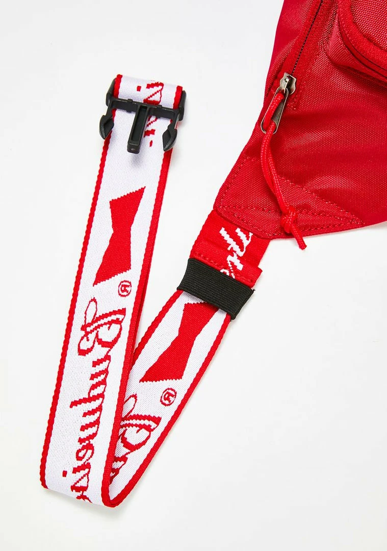 cuz you are the party bb. This heavy-duty fanny pack has an insulated compartment to stash the goodz, a front zip pocket Nรขยย an adjustable buckle strap with a Budweiser logo all ova.