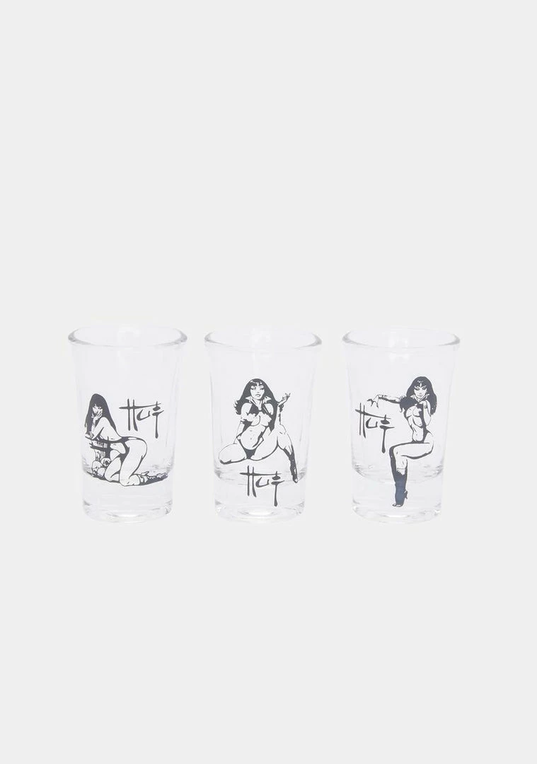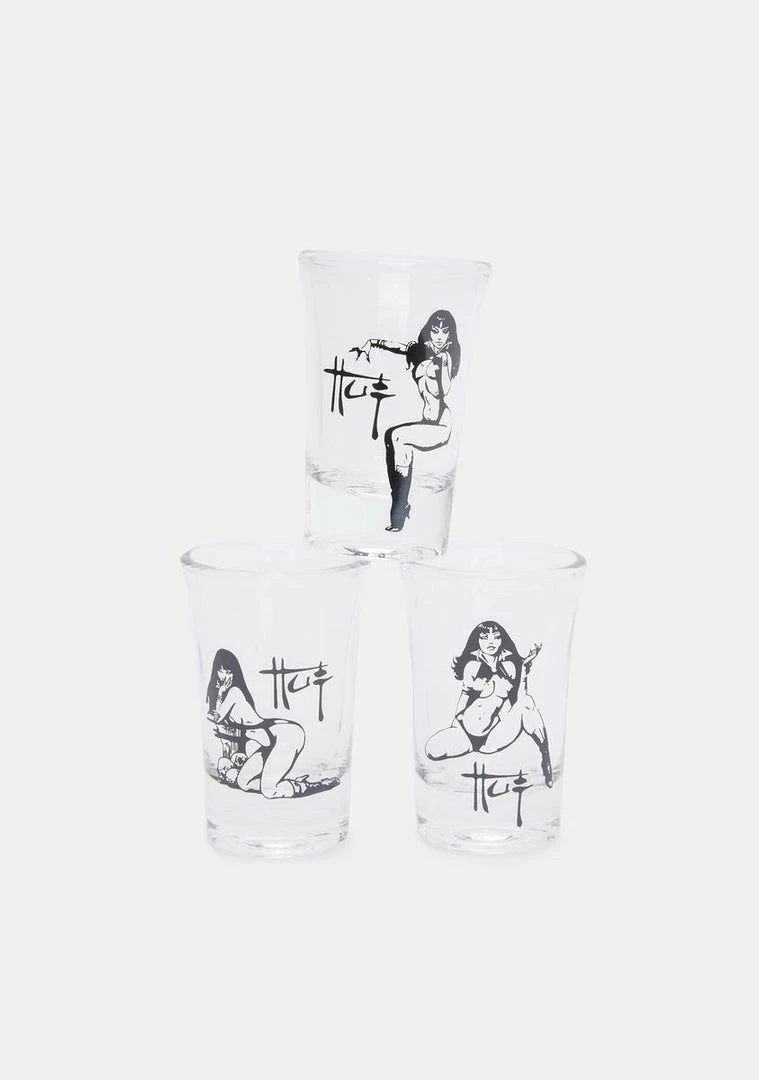 letΓ’ΒΒs play a game, babe. These glamorous shot glasses feature art from fantasy artist, Frank Frazetta, and come in a set of three.