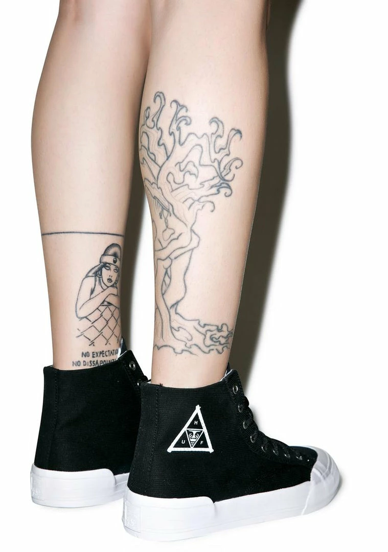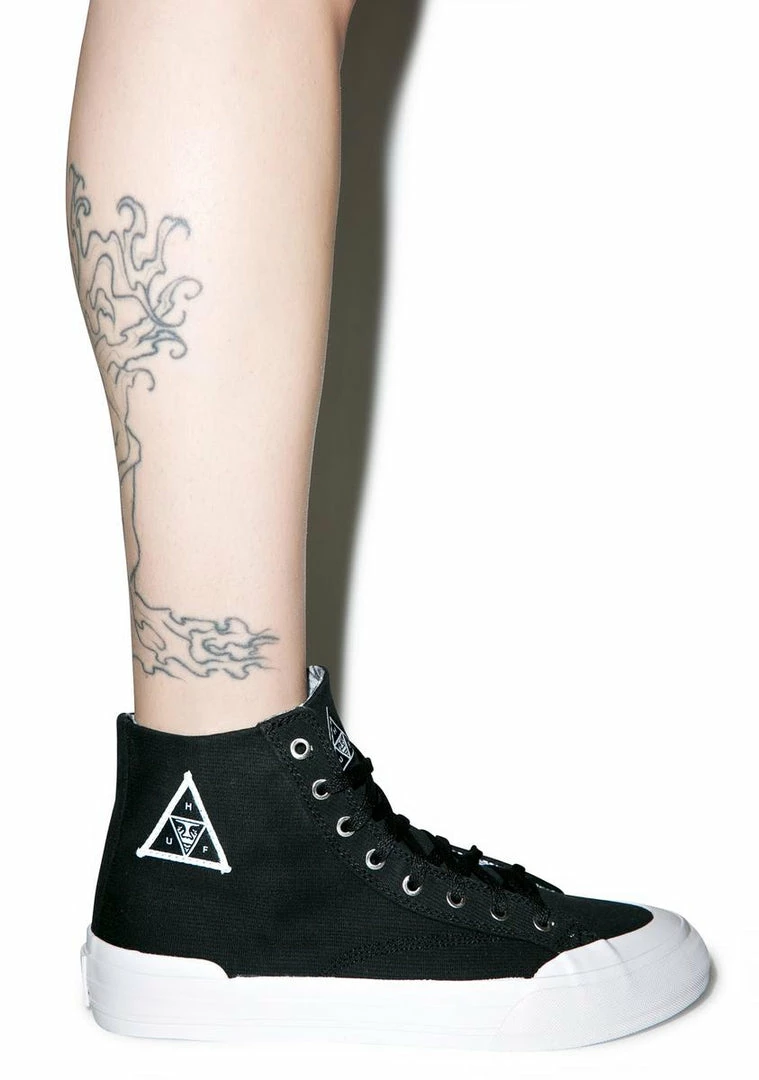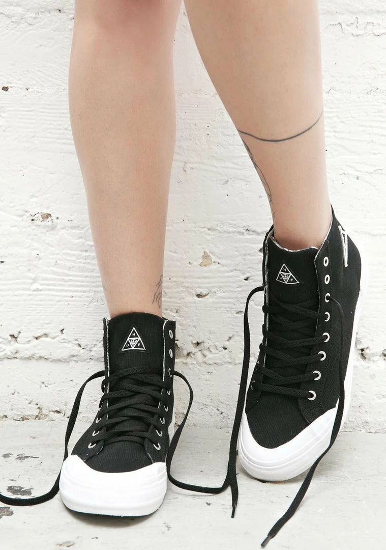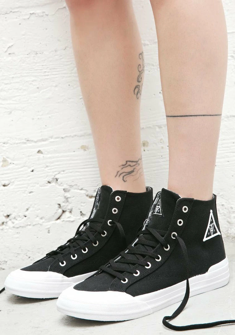 cuz itΓ’ΒΒs only the high lyfe for ya. This sik collab between HUF and Obey has produced these classic high-top sneakers constructed from durable black canvas with a contrasting white rubber sole. FeaturinΓ’ΒΒ embroidered HUF logo patches, dope printed interior and lace up closure.